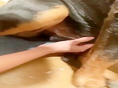 A Girl and Dog Sex Clip a girl has Slow sex with a black dog 2