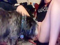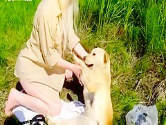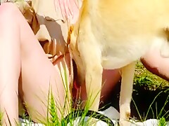 Loira e morena com cão sortudo - Blond and ebony fuck luck dog