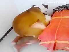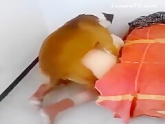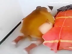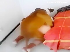 2 Vids Spliced Together Woman Fucks Dog Lots Of Dog Cum