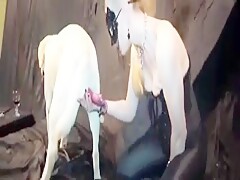 2 Vids Spliced Together Woman Fucks Dog Lots Of Dog Cum