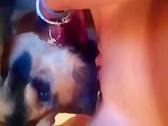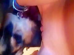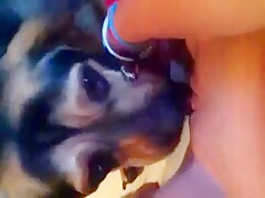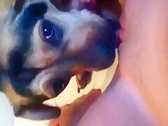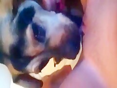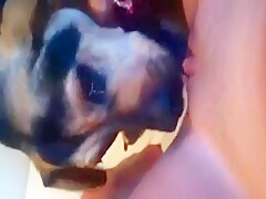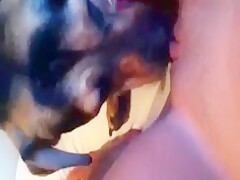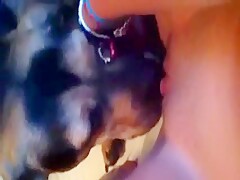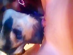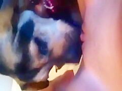 Cute chick puts peanut butter on her pussy and asshole and lets her dog lick