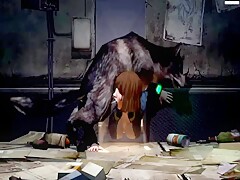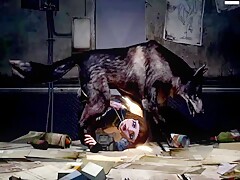 Lara gagged and fucked by dog knot dildo and flares horse cock dildo