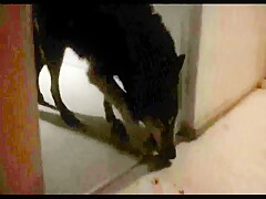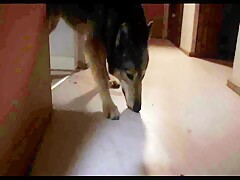 Cute teen from Brazil tries to get her dog to lick her pussy