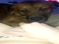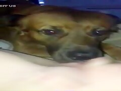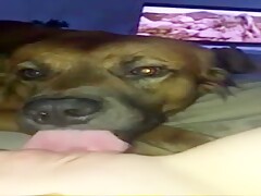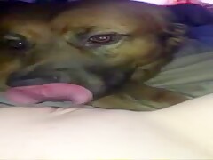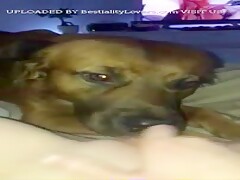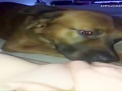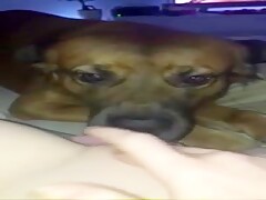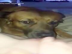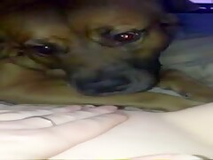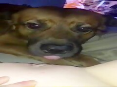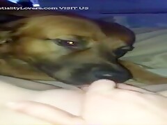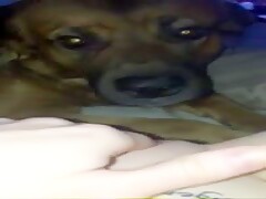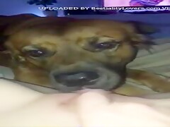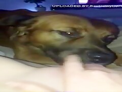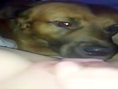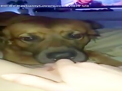 Slut films her dog licking her hole