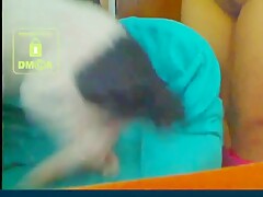 Cute teen from Brazil tries to get her dog to lick her pussy