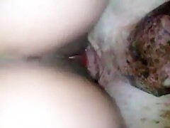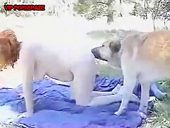 The dog fucks the girl doggy style