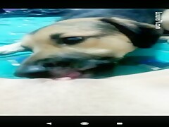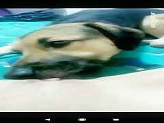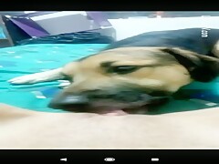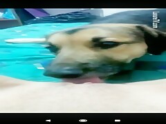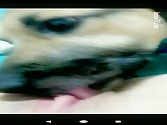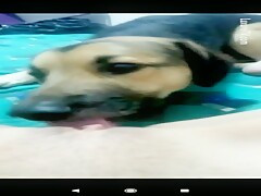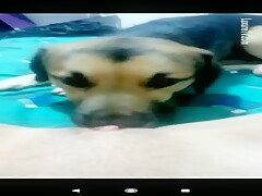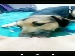 Cute teen from Brazil tries to get her dog to lick her pussy