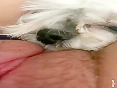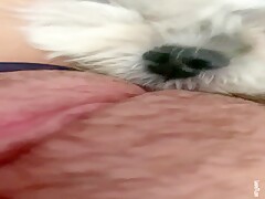 Cute dog licking her pussy