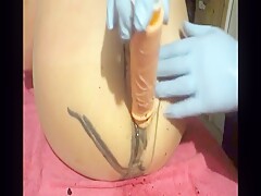 Lara gagged and fucked by dog knot dildo and flares horse cock dildo